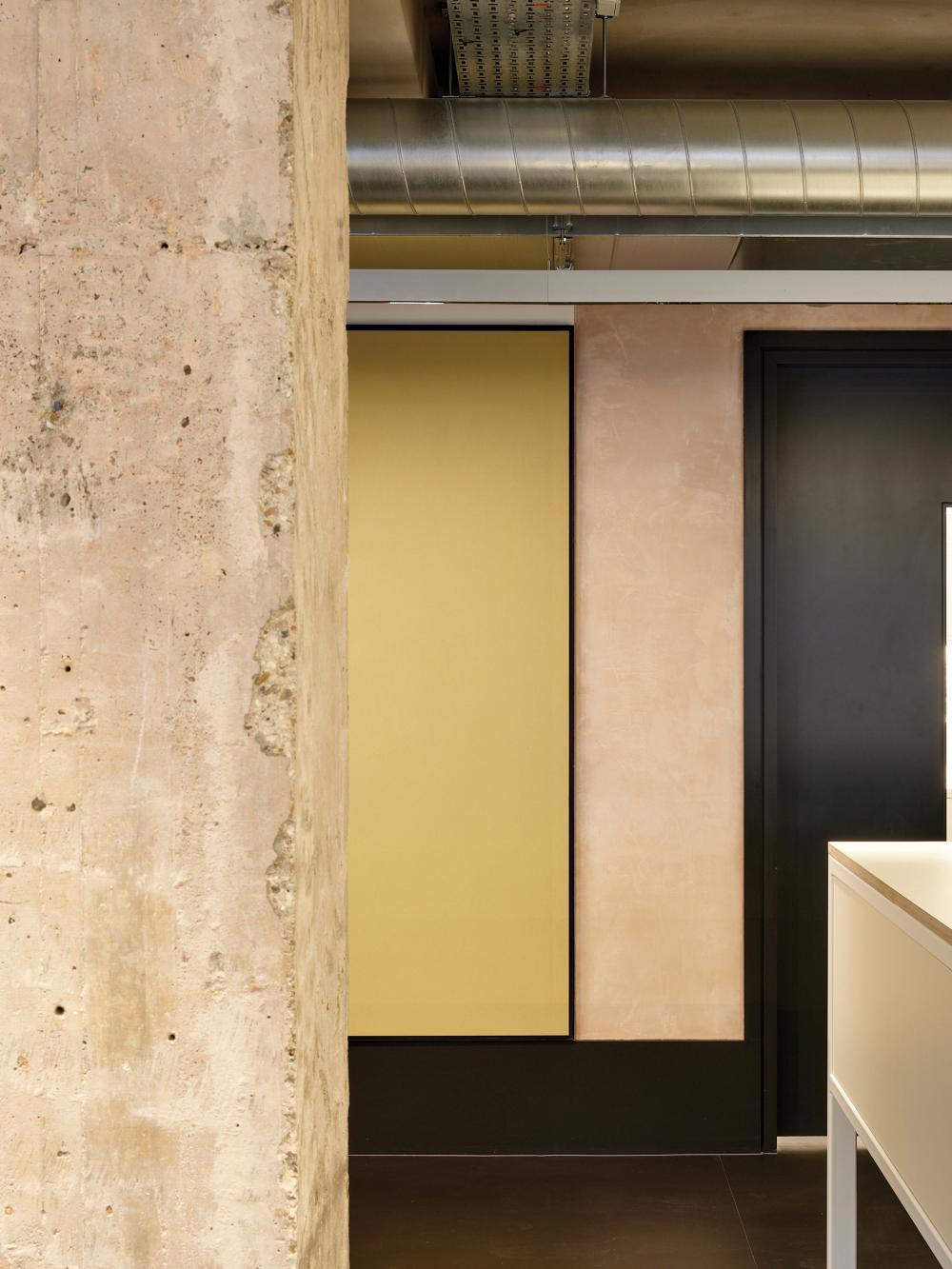 The glazed frontage is set between two brick-clad piers flanked by new entrances for the residential and commercial units. These consist of Schueco Jansen Janisol steel doors, which were specified to meet BREEAM security standards.