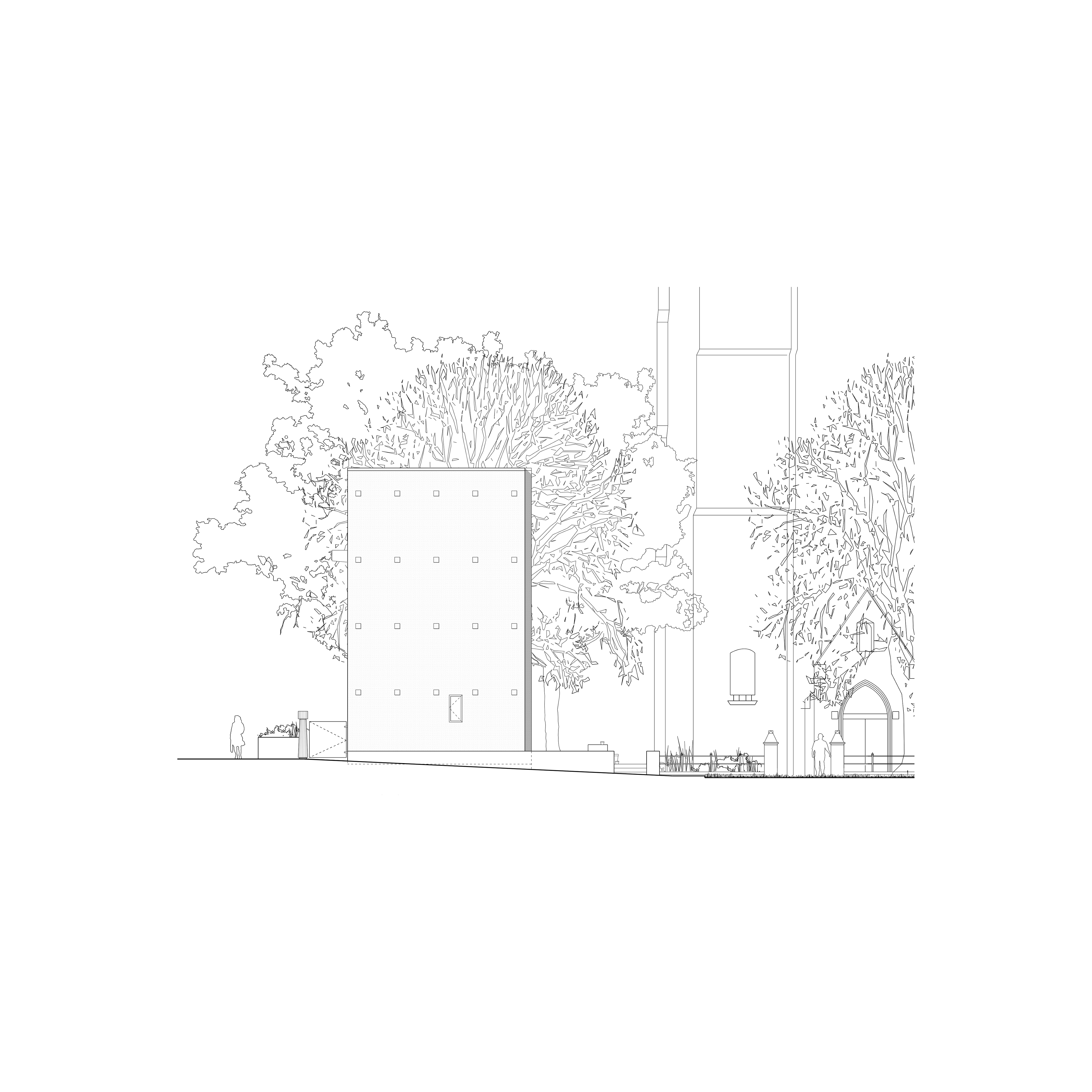 Our proposal for a new pavilion at Lambeth Green is a response to the context and historic setting that will act as a gateway to the Garden Museum and St Mary’s Garden. This is an opportunity to form a new pavilion that is visible from Lambeth Bridge and act as a marker within this historic context. Inspired by the form of Lambeth Palace and the Medieval Tower of St Marys now the home of the Garden Museum, the addition of a new tower will accommodate the needs of the gardeners and volunteers and announce the Museum from the public realm.