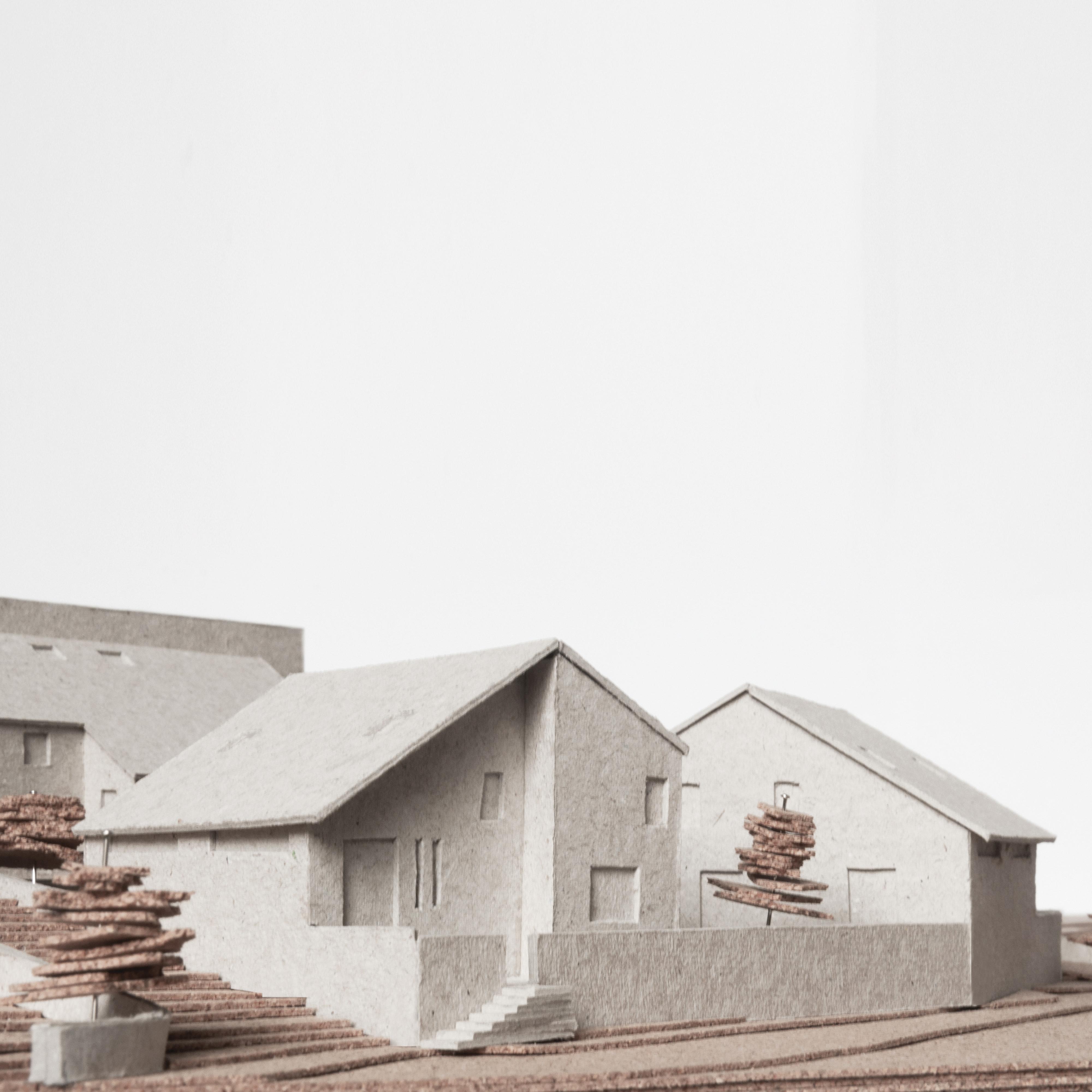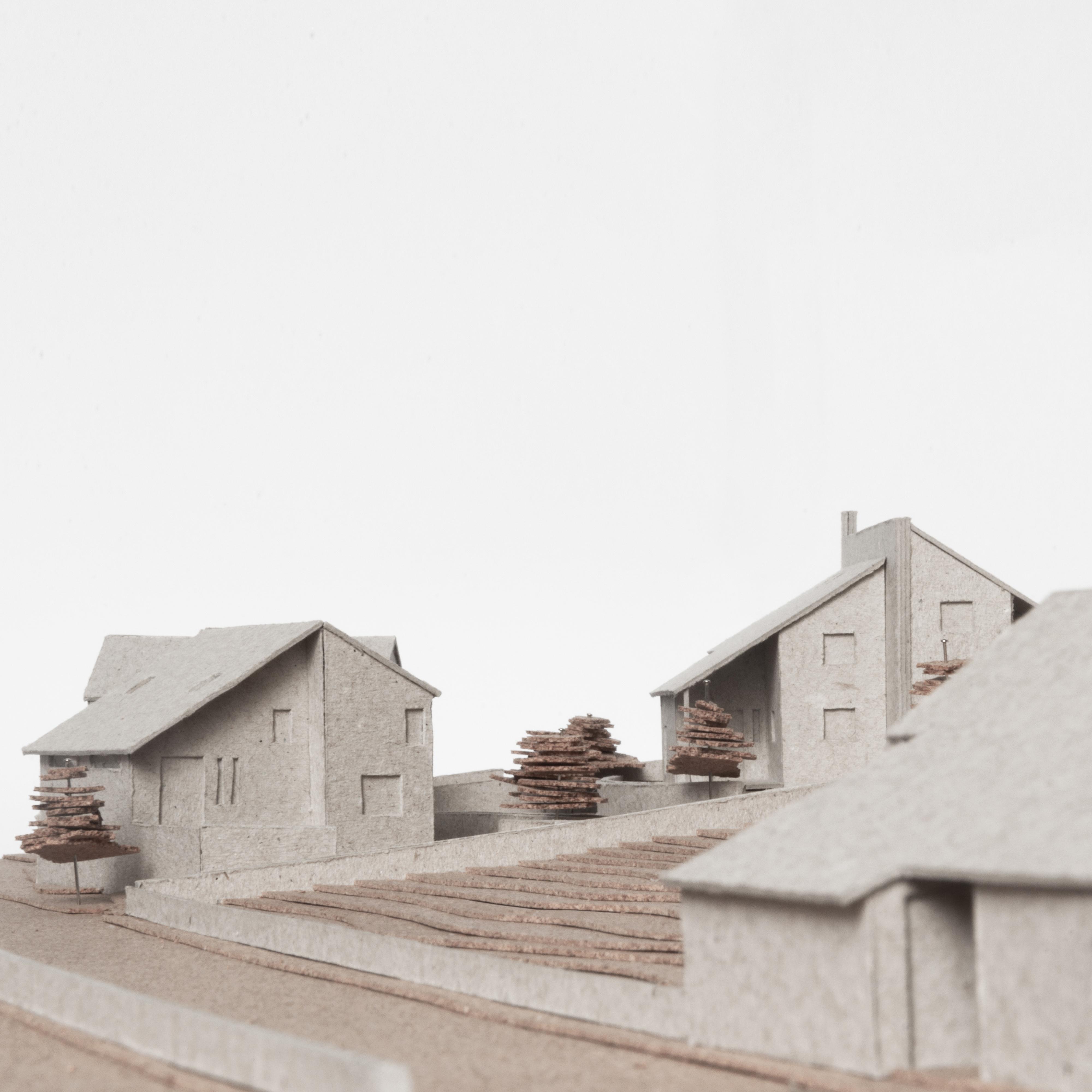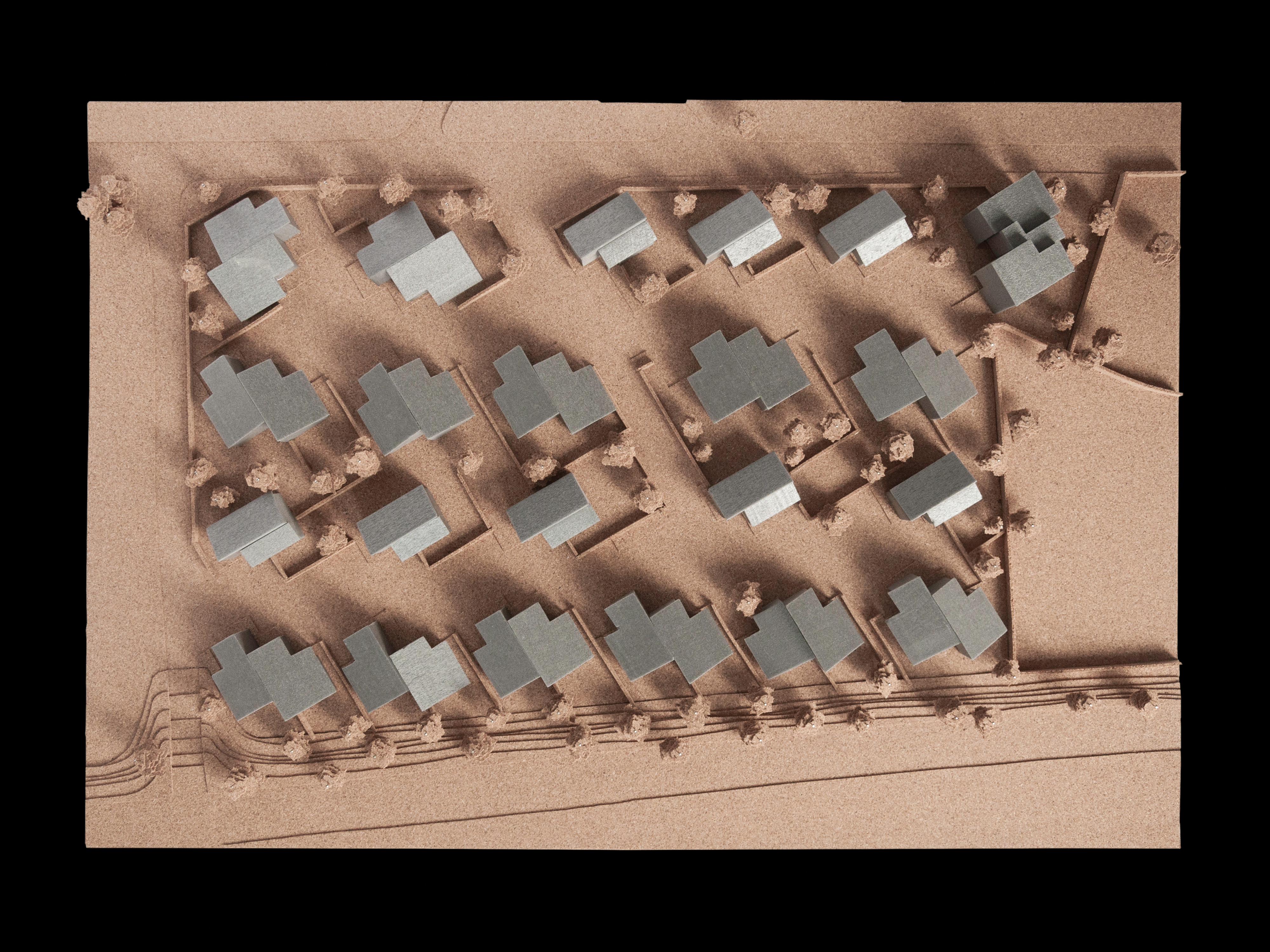 Our proposal for this new 21st Century regeneration of Burnside is to create a hamlet that responds to both the context but also will attract a younger population to this historic village. We have worked within the site boundary and have created a mix of house types but also that are flexible in the type of tenant they would attract. In order to densify the site, we have allowed for an entrance block that becomes a marker in this flat landscape.