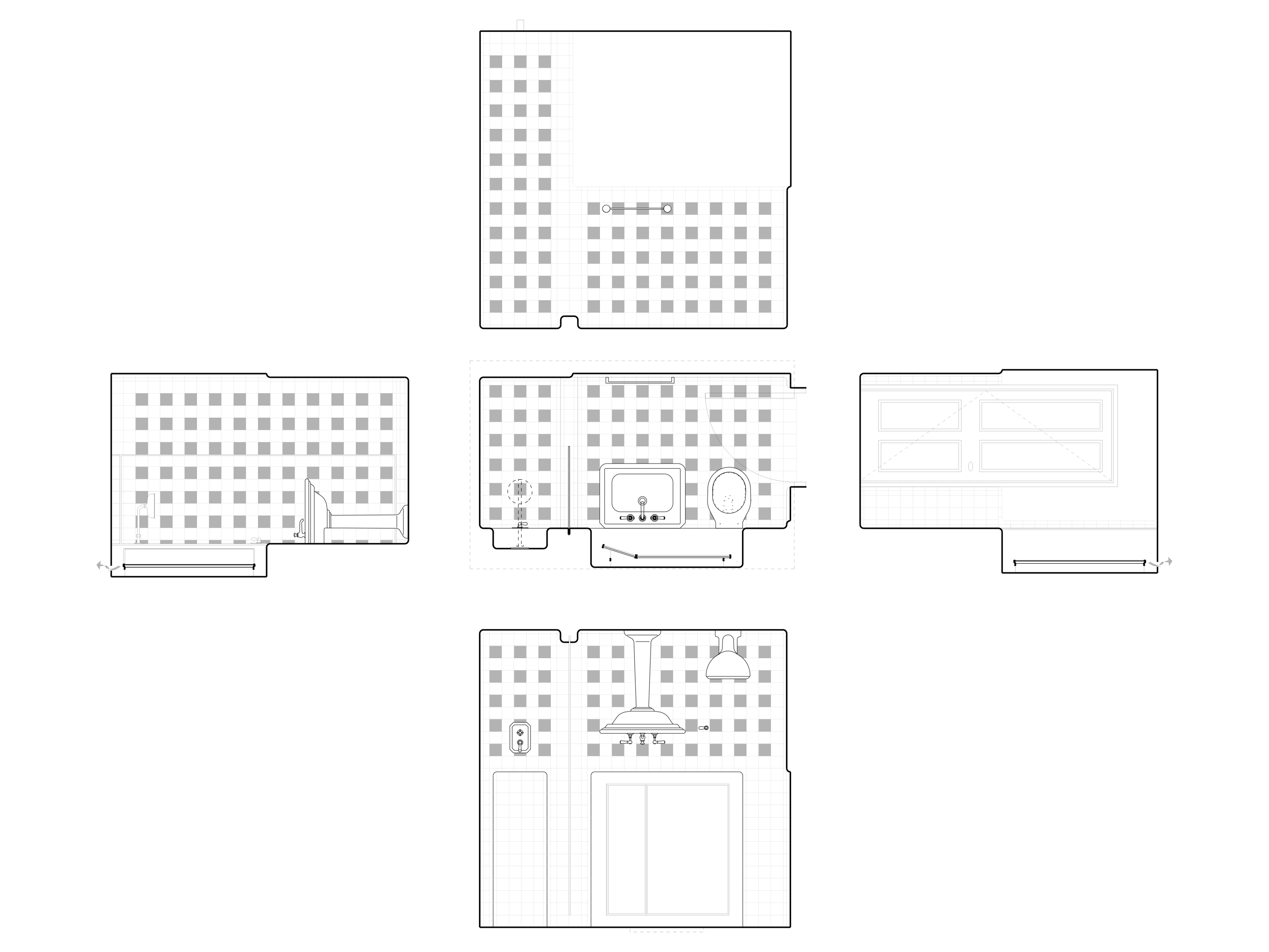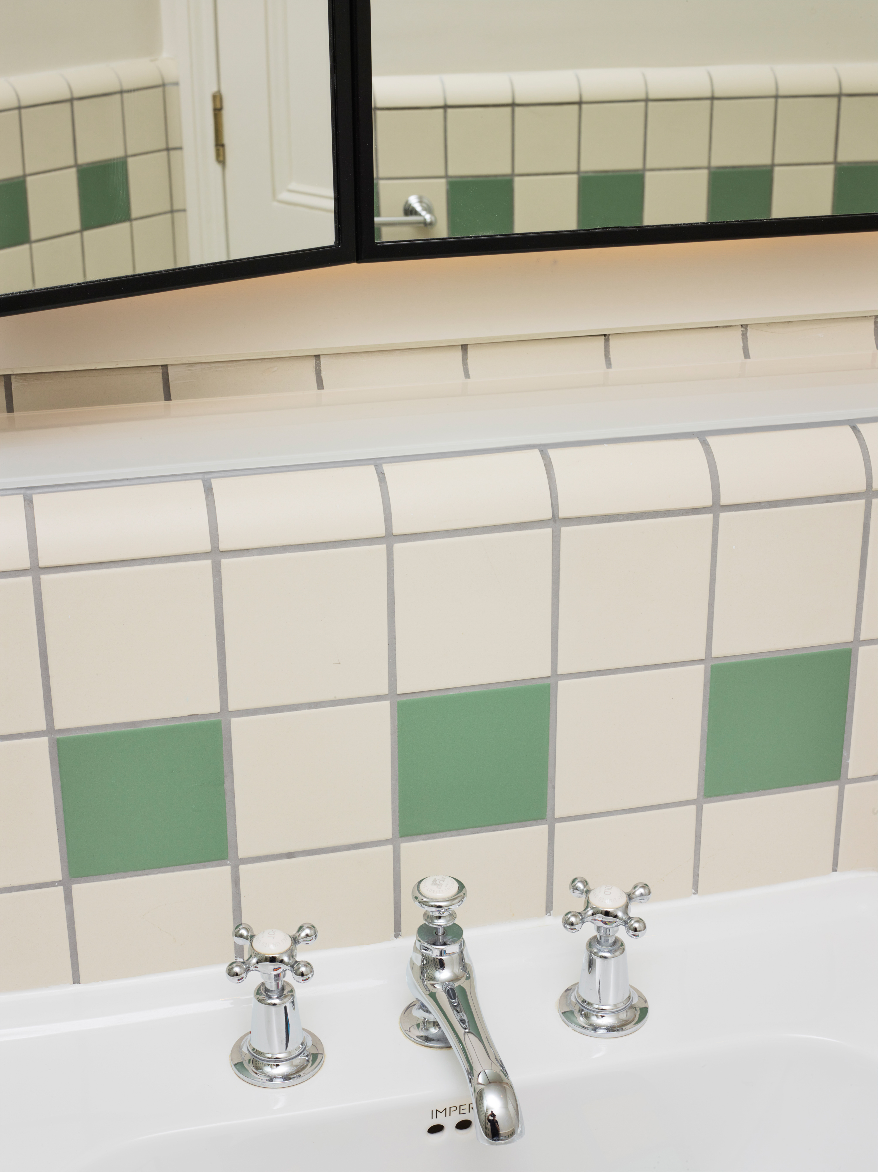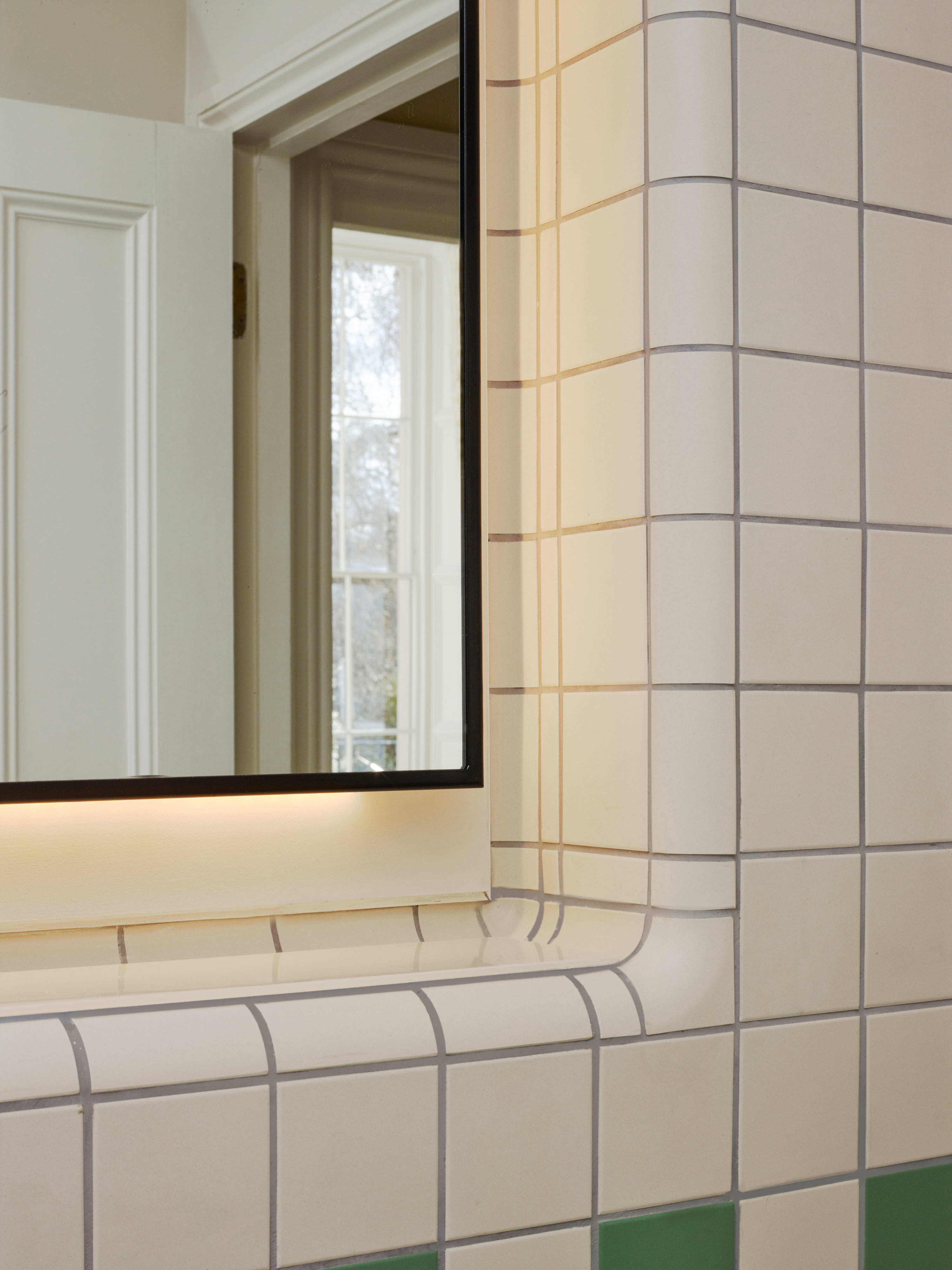 The bathrooms were carefully detailed to offer 5 star quality and elegance with a contemporary approach to period colours and using victorian tiles. Detailing of the bathrooms was carefully executed by the contractors as we were meticulous in the setting out of the tiling in order to create a very clean and ordered space. We designed new vanity units with fine black metal framing. The sequencing of the project was incredibly complex as the Club remained open and the contractors worked through the project house by house and we were able to achieve sectional completion to ensure the College did not lose too much in revenue during the project. We visited the site weekly and due to the complexity of the sequencing of work to the listed building we often had to make decisions quickly as we uncovered some unknowns during the first phases of strip out.