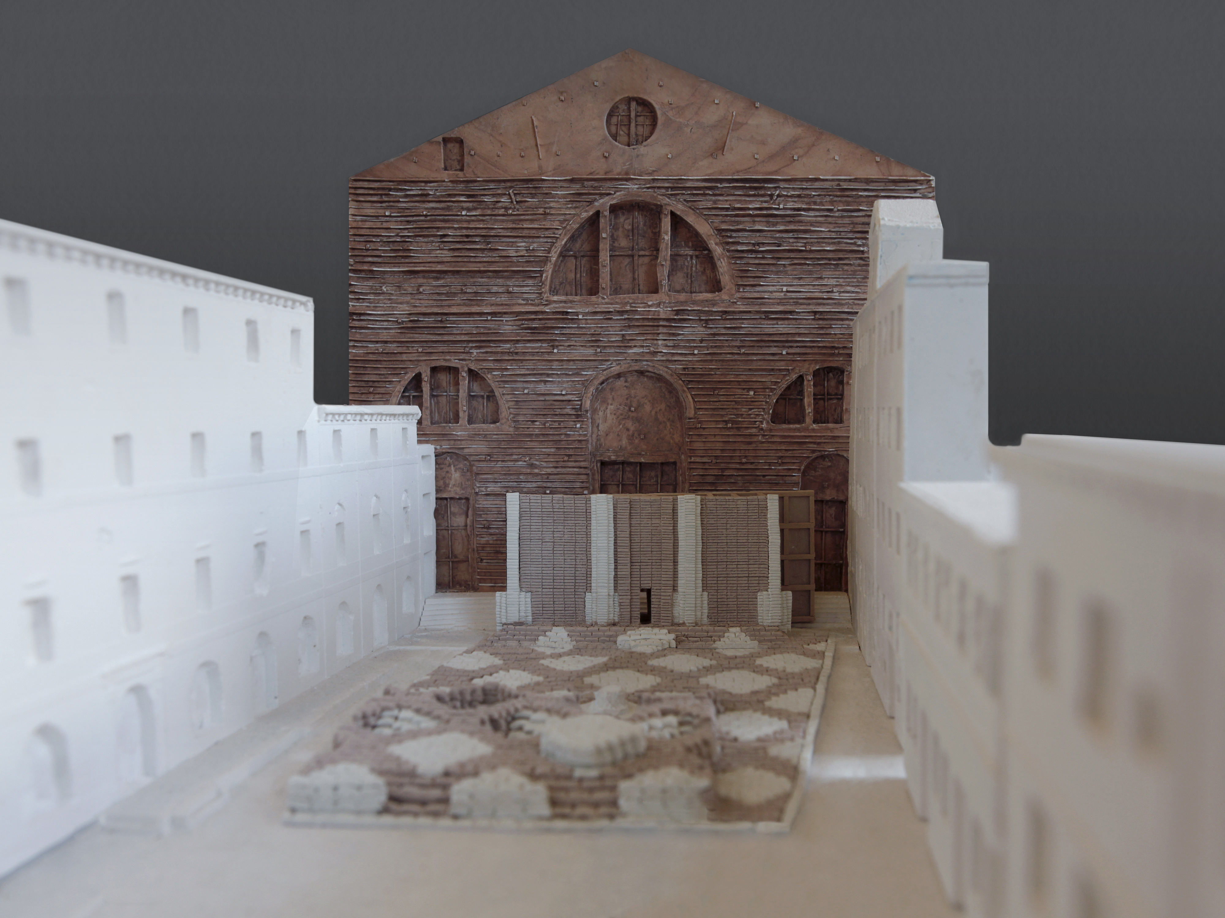 While this year’s installation addresses the interior of the church, Masegni II will address the imposing facade of San Lorenzo and its associated campo. Constructed entirely of a cladding of sandbags, the eight metre tall wall proposed for the summer of 2015 offers an abstracted and fragmented glimpse of how San Lorenzo’s completed facade might have looked.