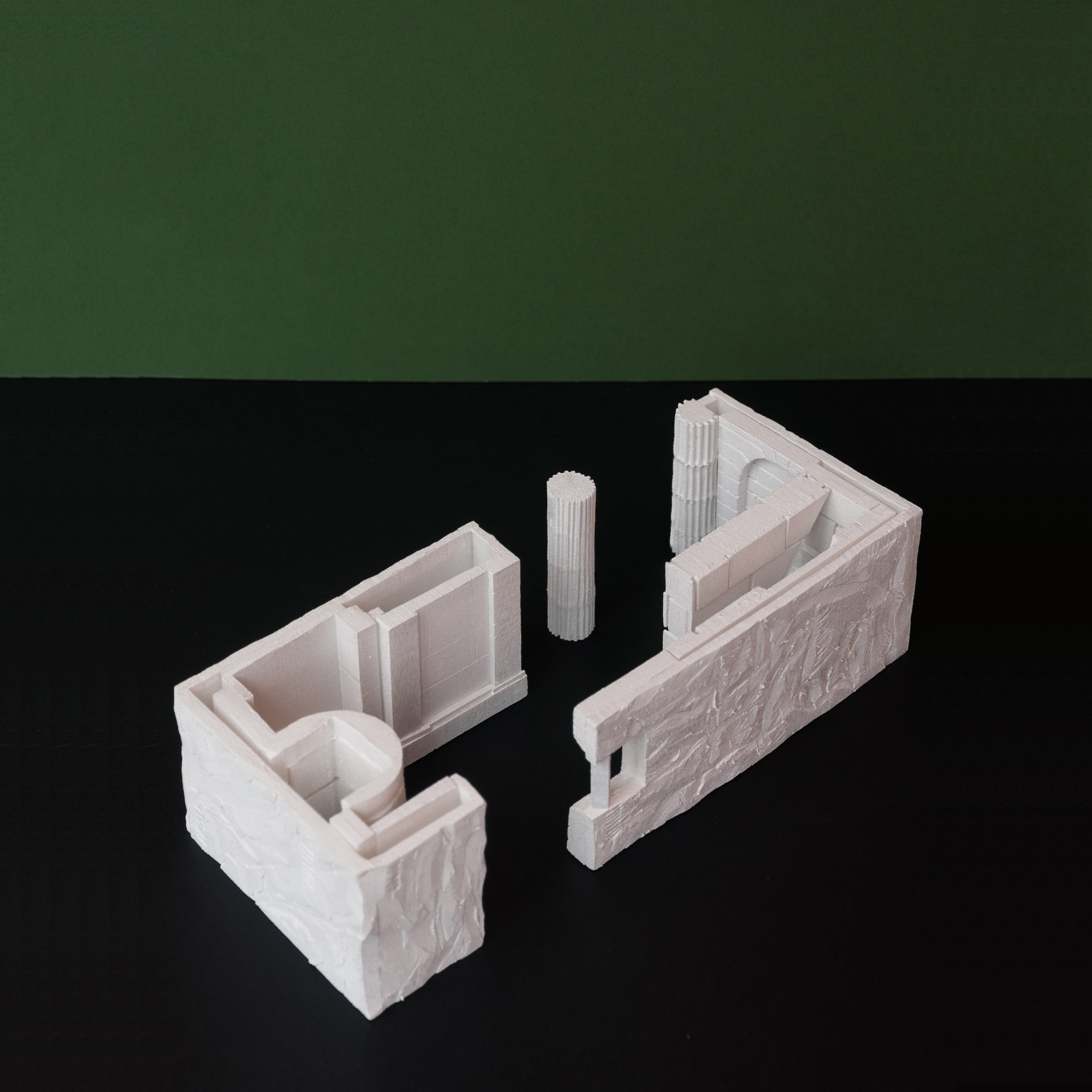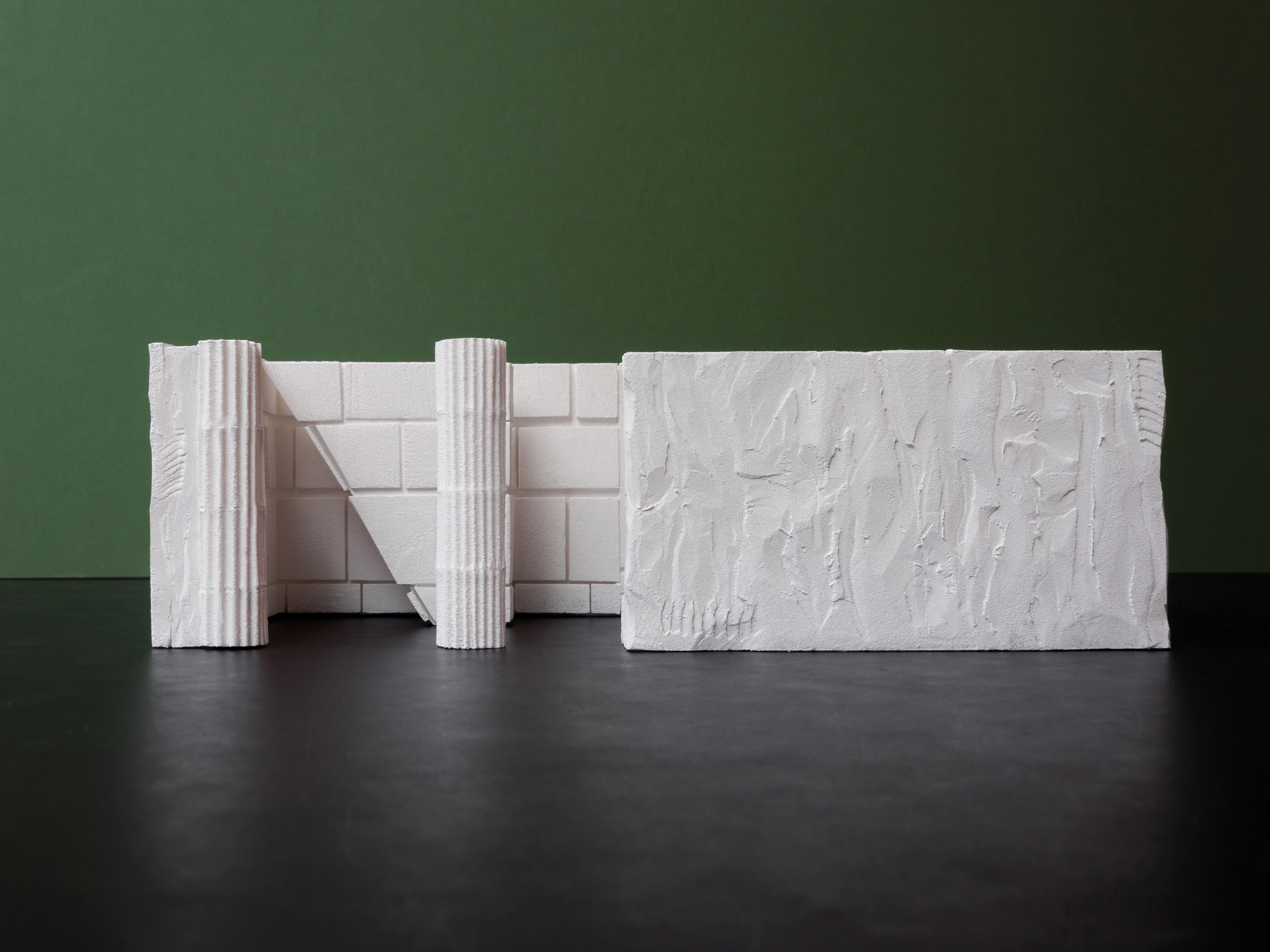 Projected on the gallery wall will be a film that traces a narrative arc through the RIBA archive, stone quarries on the Isle of Portland, the white cliffs of England’s south coast, and the crafting of these materials into the final installation. The visuals will focus on the way that materials form our human readings of a boundary. The solidity of the stone edge of a building façade set against the careful movements of a drone delineating the White Cliffs of Dover as a line from above. A unified soundtrack will play within the gallery space: the roar of waves breaking at the base of a cliff, the sounds of a quarry forming building materials out of natural rock, the voice of the craftsmen.