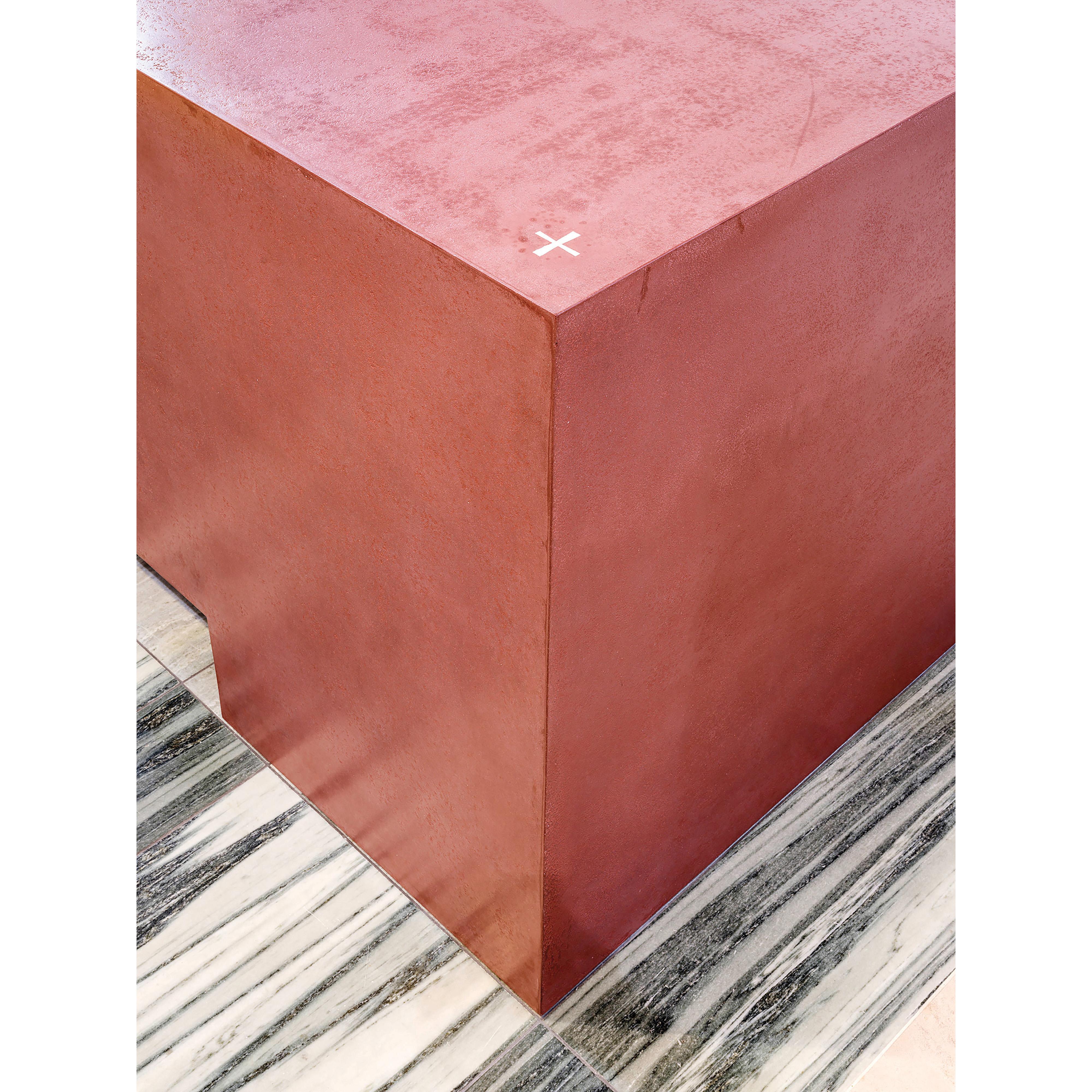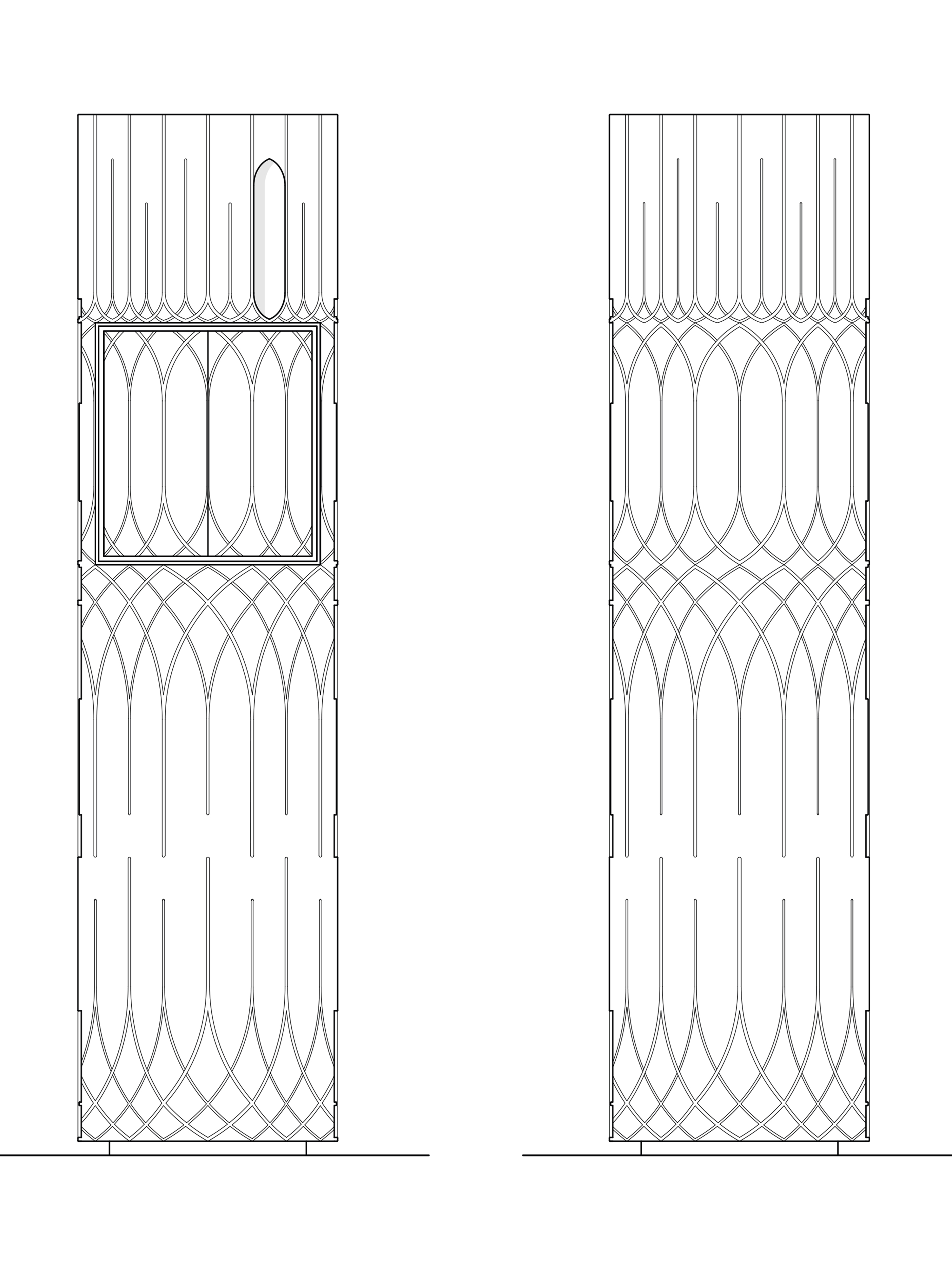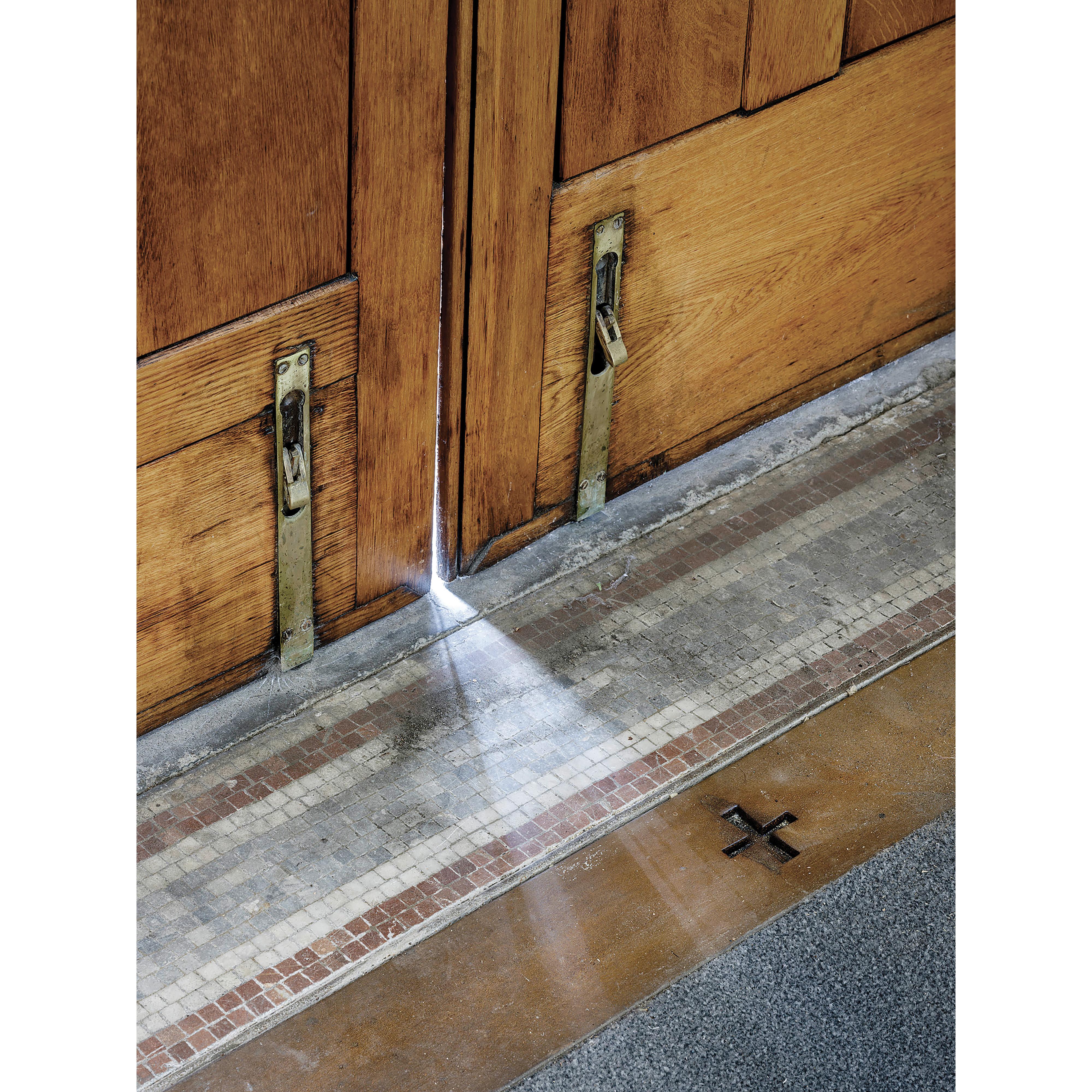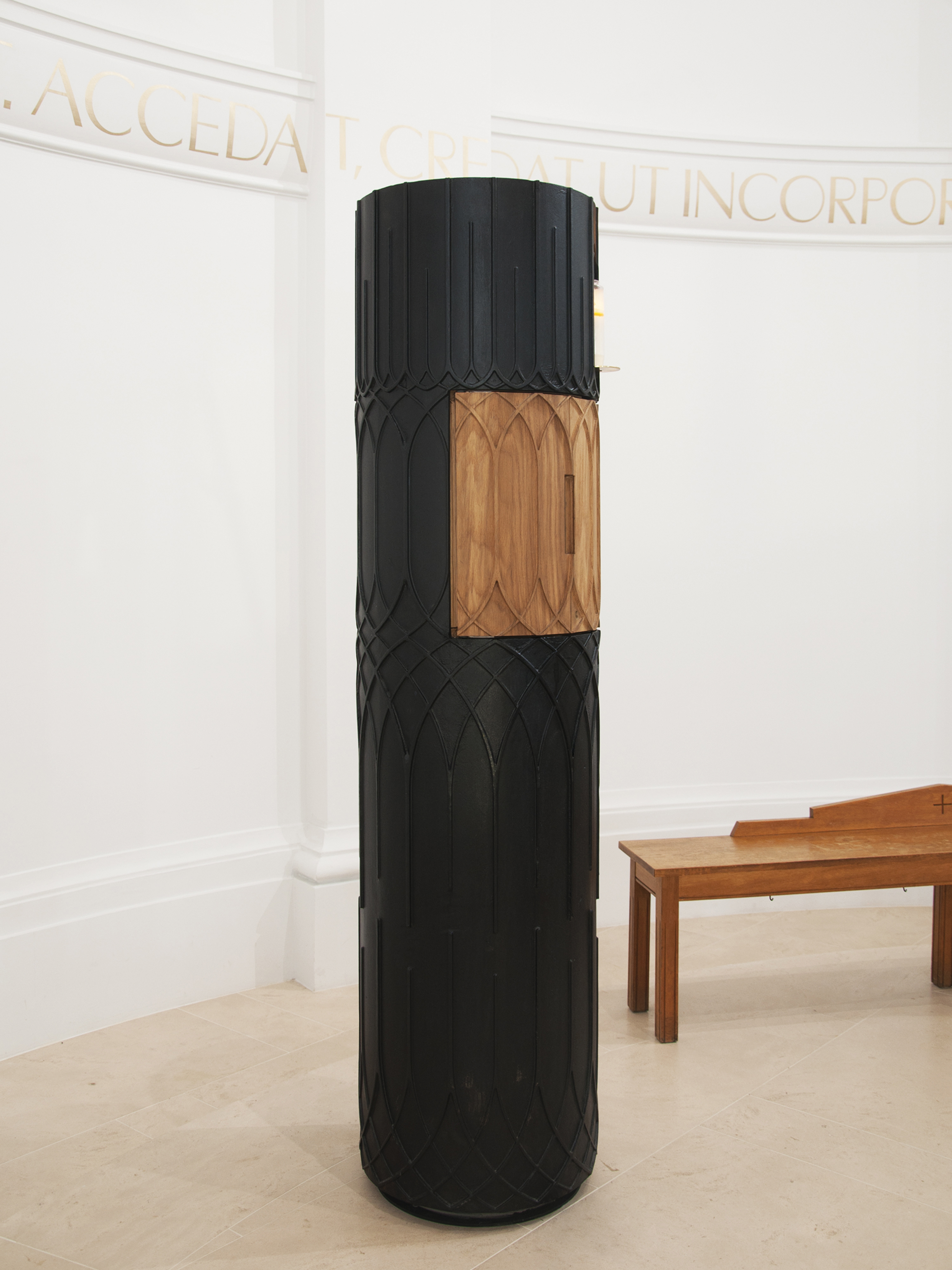 New confession booths were formed, delicately detailed to echo the form of the internal vaulted ceilings. The floor level of the altar was raised and reconfigured, with a large slab of green marble, which must have sat rather heavily as a backdrop to one of the side altar, transformed by being carefully integrated into the high altar floor. Combined with a large, beautifully formed cast iron circular light fitting, this subtly defines the aura of the high altar, reinforced by a very delicate fresco, hand-painted and depicted in gold leaf on the rear wall of the altar. The architect’s fruitful collaboration with artisans and makers permeates this project, with the focus being the high altar itself, a strong simple form in blood red Venetian plaster, by the ceramicist Julian Stair.