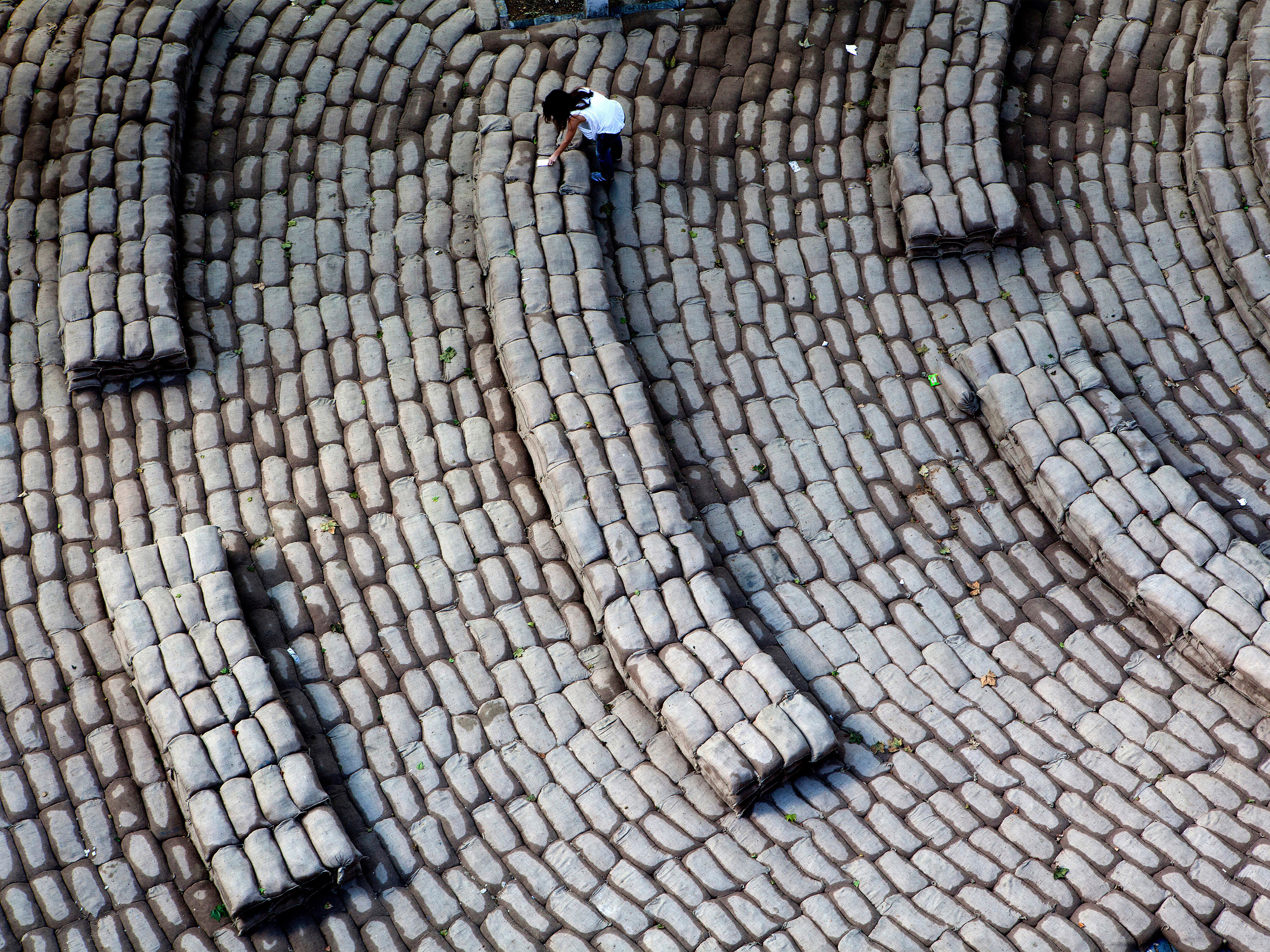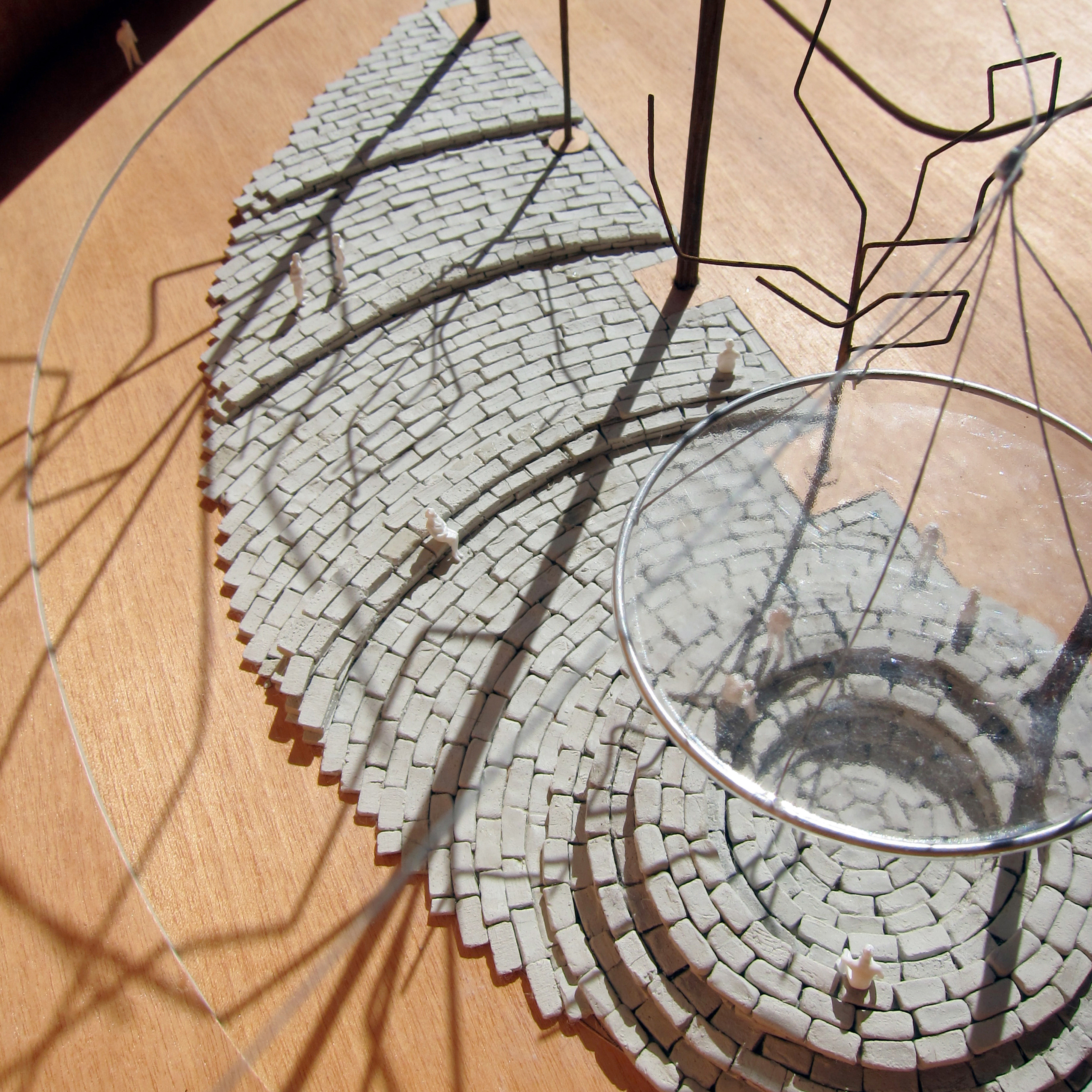 We were interested in using a repeated module size, to transform the application of this material to become a new type of paving surface. The scale of the installation transforms this humble object into a beautifully crafted surface. The same material could provide a robust surface for foot traffic and also allow people to sit and gather.